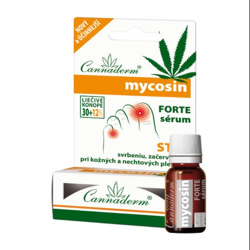 Cannaderm Mycosin FORTE – antimykotické sérum s mierne kyslým pH obsahuje účinné látky: konopný olej, klinček, citrusové silice a batterikal. Sérum pôsobí antimikrobiálne a obsiahnuté prírodné zložky zmierňujú nepríjemné sprievodné prejavy kožných plesní ako je suchosť, svrbenie, pálenie alebo začervenanie pokožky.
