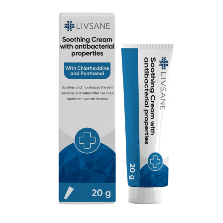 Upokojujúci krém s antibakteriálnymi vlastnosťami.