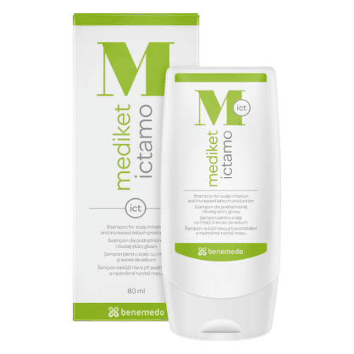 Mediket Ictamo je vysoko účinný šampón na ošetrovanie problémov kože hlavy, ktoré sa prejavujú podráždením, svrbením a nadmernou tvorbou mazu.