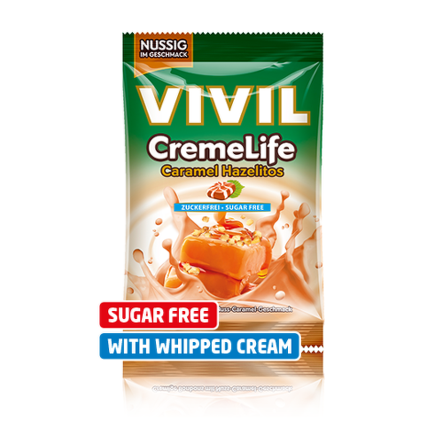 Osviežujúce cukríky s príchuťou lieskových orieškov, karamelu a smotany s náhradným sladidlom.